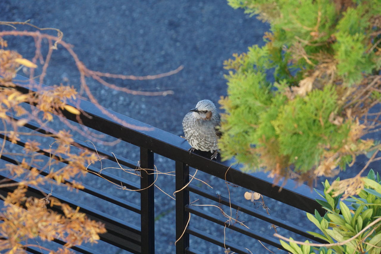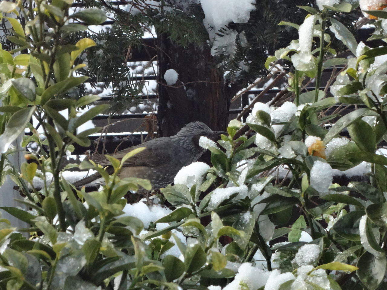 下の写真はベランダから4メートル離れたところにとまっていたヒヨドリです。しばらくじっとしていてくれました。