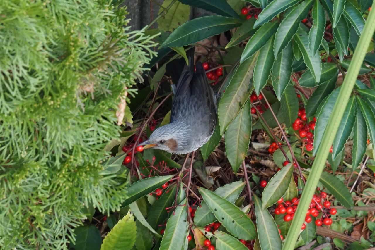 Sony a6000実が赤くなるころ、朝早くから庭に来て食べます。
