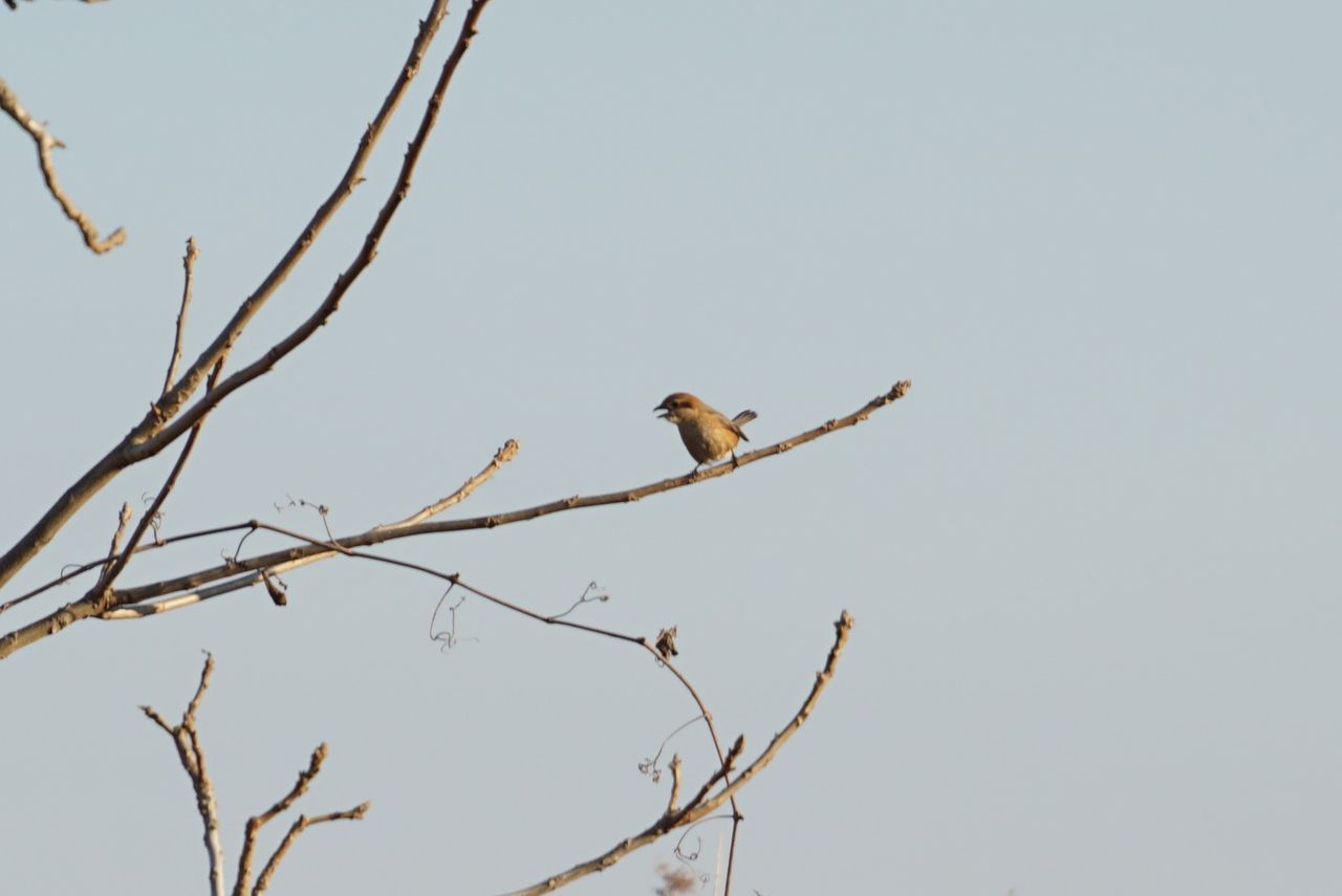 孤高の狩人百舌。百舌は他の鳥の鳴きまねが得意で、百の舌と書いてモズと読みます。しかし、百舌が、実際他の鳥の鳴きまねしたところは見たことがありません。まねっこが上手過ぎて、百舌だと気が付かないのか・・