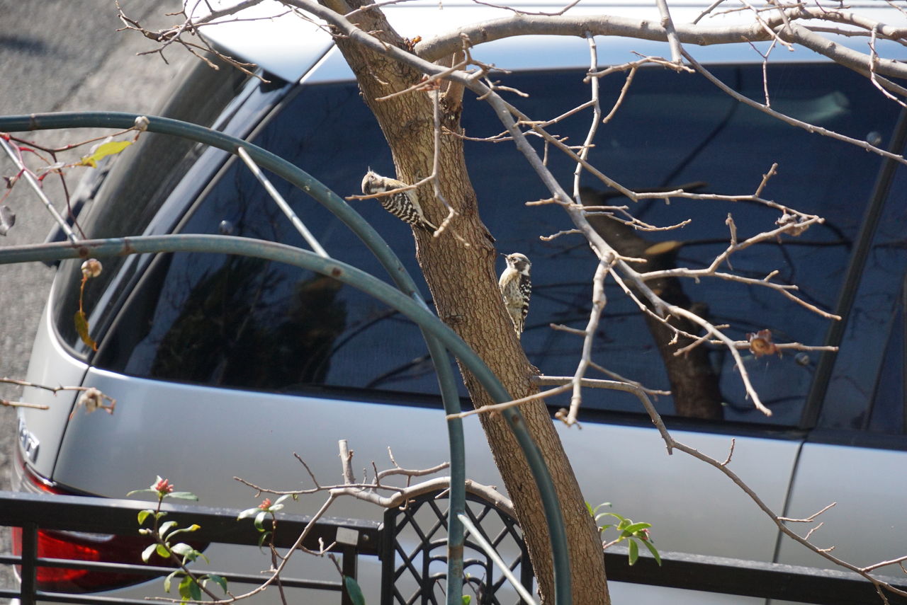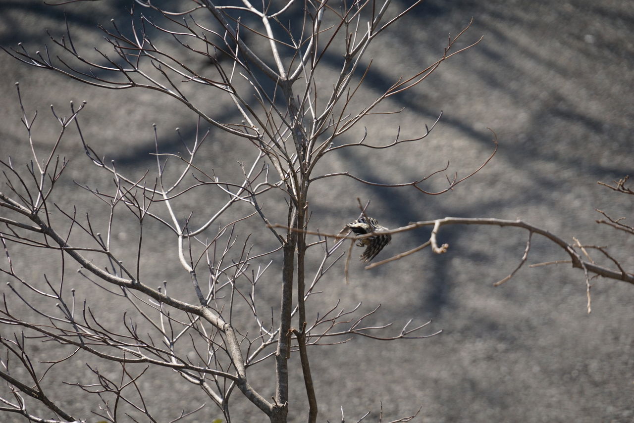 sony a6000 photo by Yukey洞が気になるのか、しきりに覗いています。啄木鳥は木の洞などに巣をつくります。つがいで来ていたので、マイホーム探しをしているのかもしれません。