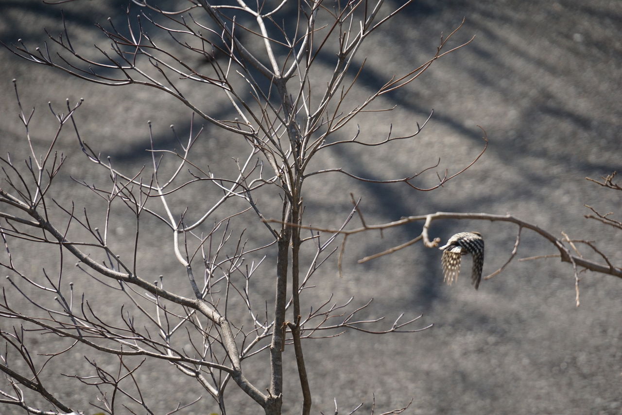 コゲラの飛び立つ瞬間をとらえています。華麗な飛翔と言いましょうか、とても軽やかな身のこなしに感動しました。