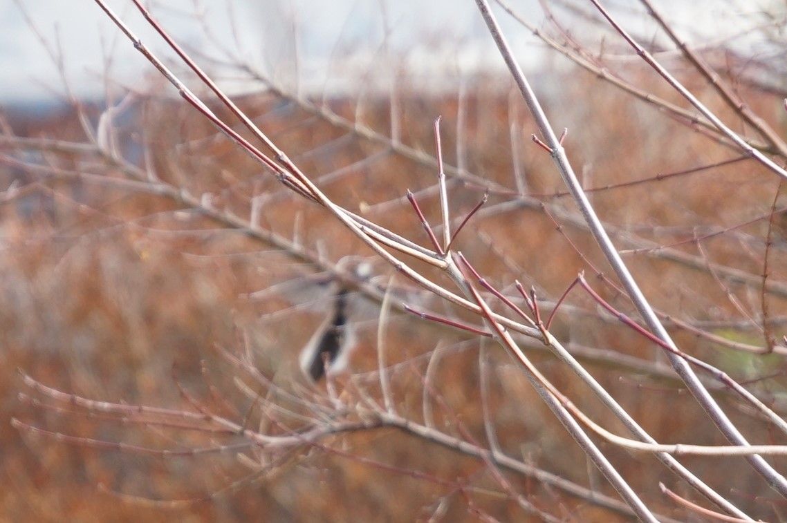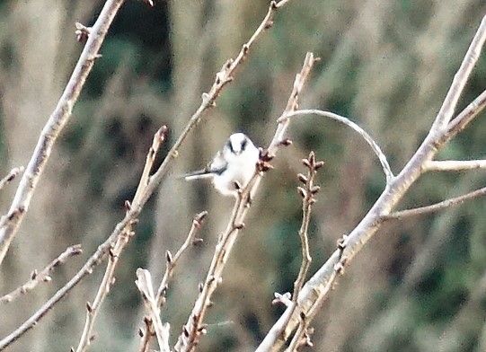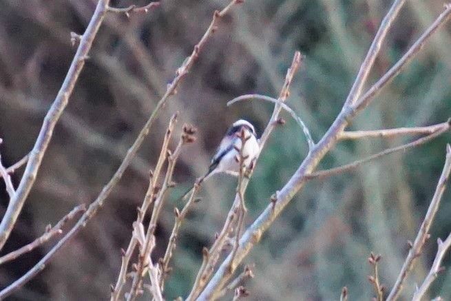 エナガは、冬集団で暮らすそうです。この日、たくさんのエナガが桜の木でチージュリリリ・・ジュリリリ・・と鳴いていました。
