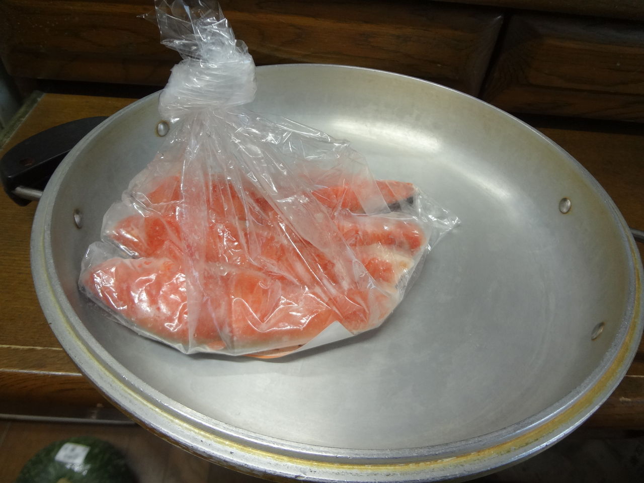 ちなみに面積の狭いものではあまり効果がありませんでした。なるべく面積の大きいものが良く解凍されるのだと思いました。