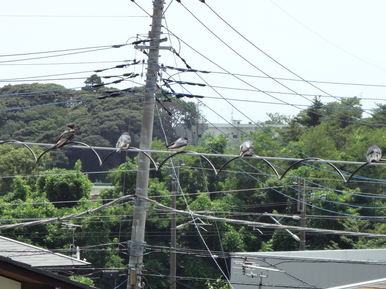 毎年夏になると、家の周りの道路を滑翔しながら虫を捕らえるツバメ、8月は、巣だった雛たちを引き連れ家の前の電線で休みながら、飛び方や虫取りのお稽古をしています。