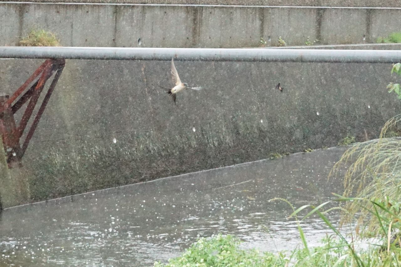 近くの川では、コシアカツバメとツバメが同じ場所で採食しているのが見られます。