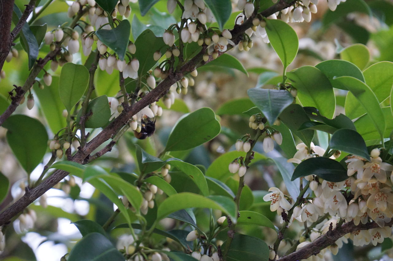 魅力は何といっても花と、花の香りです。花は1センチ程度の大きさですが、下向きに咲く白い花はとてもきれいです。しかし、受粉を終えた花はすぐに茶色くなり落下します。花のきれいな間は束の間で、庭にあるから楽しめる花ではないかと思います。
