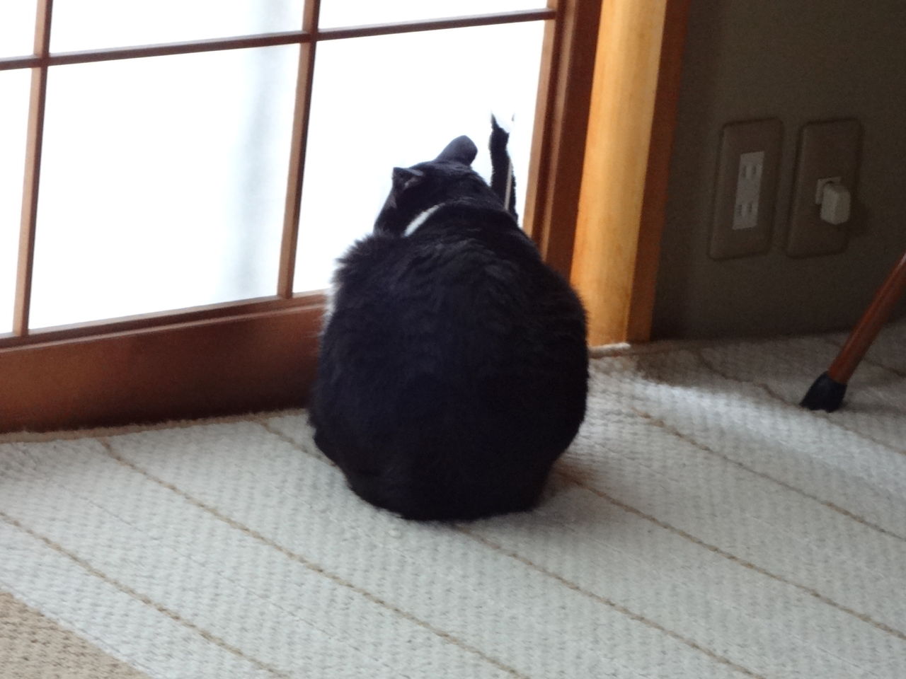 Cyber-shotWX70障子を開けるのが面倒になると紙を破いて首だけ出して外を見ます。それで今は、ソラの体分左右に20cmくらい、あるいは座布団を置いて外が見られるよう障子を開けています。