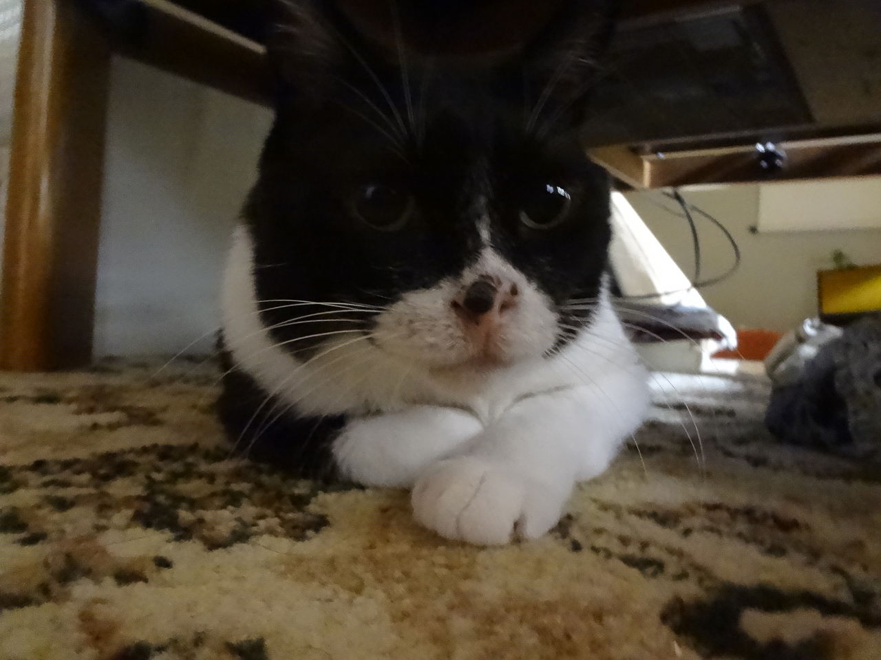 唯一許されているパソコンの机の上で。端っこは涼しい。