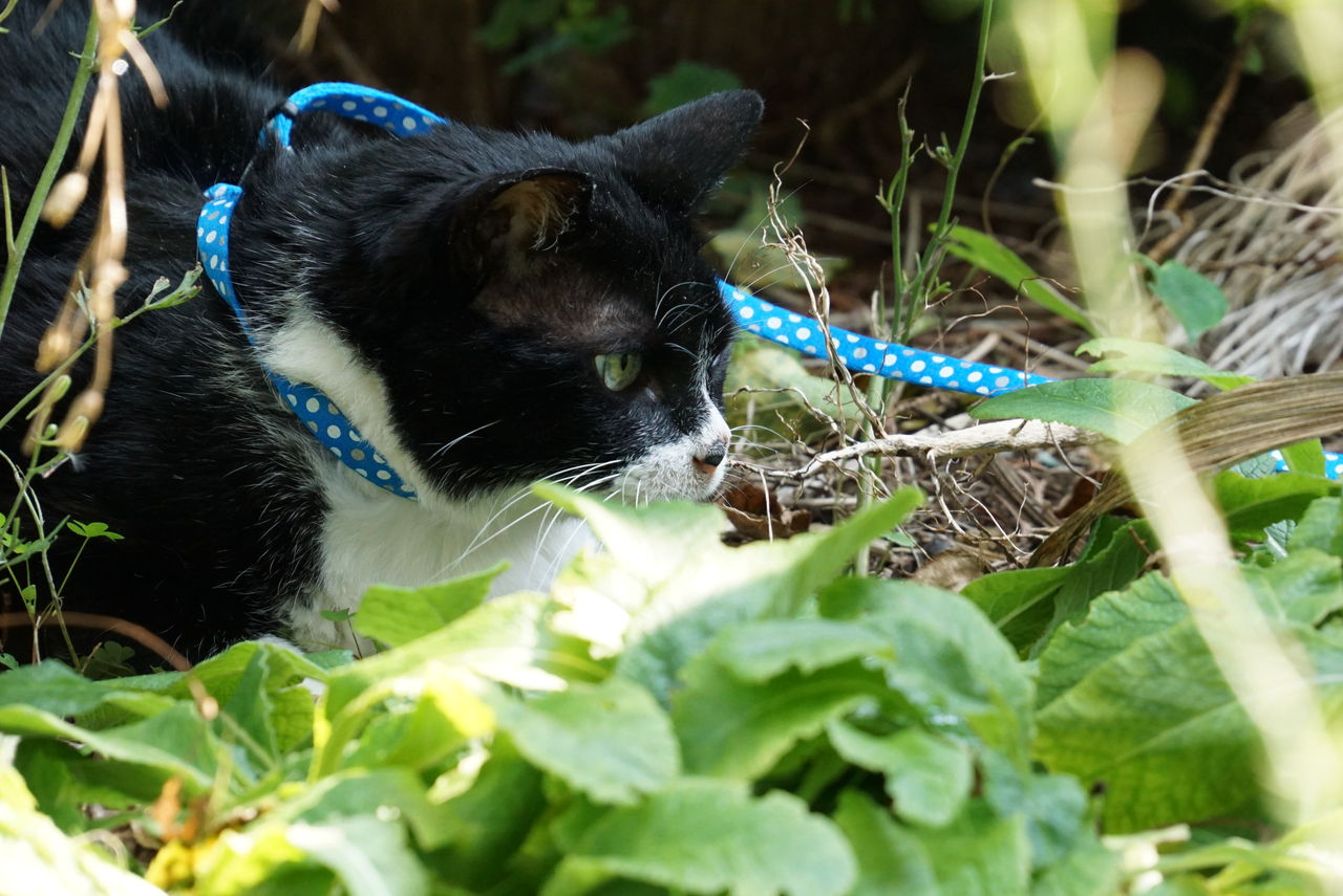 sony a6000 photo by Yasunosukey便秘がひどい時、外に出て気分転換をしたら少しは気分も良くなるだろうと思って、リードを付けて庭に出ました。散歩もかねて20分ほど。しかし、ソラはリードが大嫌いです。リードを付けて庭に出るととたんに不機嫌になりました。部屋に戻って来てからも「フーッ」と威嚇して激しく猫パンチを繰り出してきました。ご飯をあげても「食べてやるけどさ」みたいな態度で食べていました。一応、庭で小便をして、落ち着きましたから、庭に出た甲斐はありました。