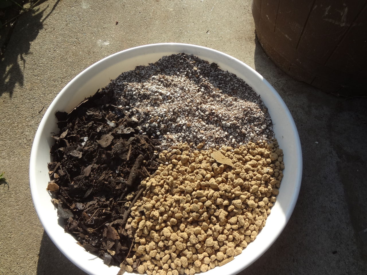 赤玉土小粒、腐葉土、多肉植物用用土を等量に混ぜた物です。