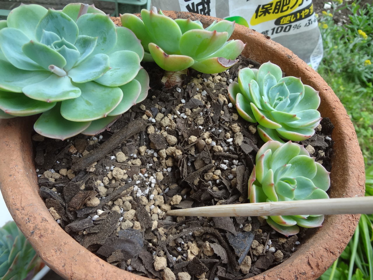 最近話題沸騰の多肉植物、我が家にも多肉君がいくつかありまして、その中のひとつエケベリアの植え替えと増やし方について書きます。