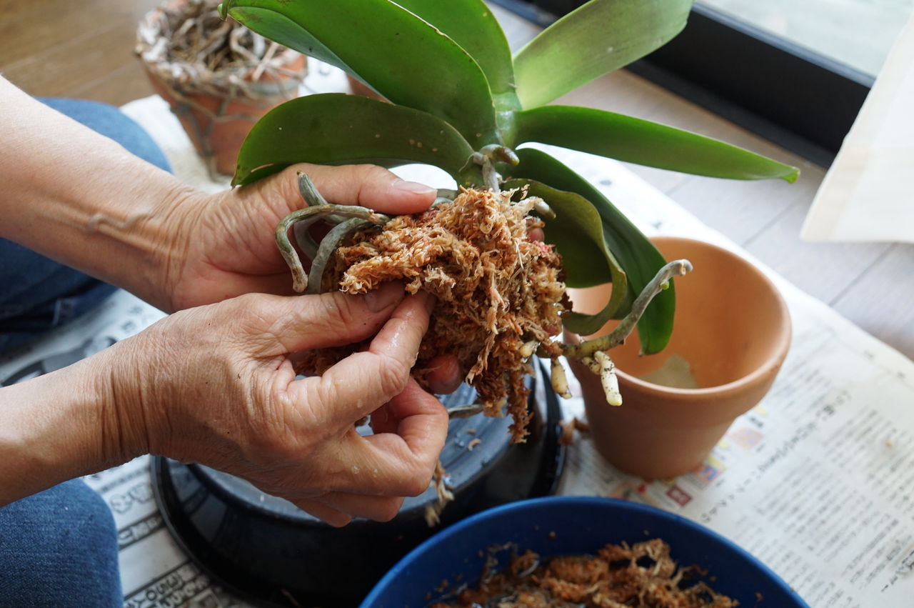 根腐れをした株の植え替えの仕方を贈答用の株を植え替えで説明しましたので、そちらをご覧ください。胡蝶蘭(ファレノプシス)を植え替える