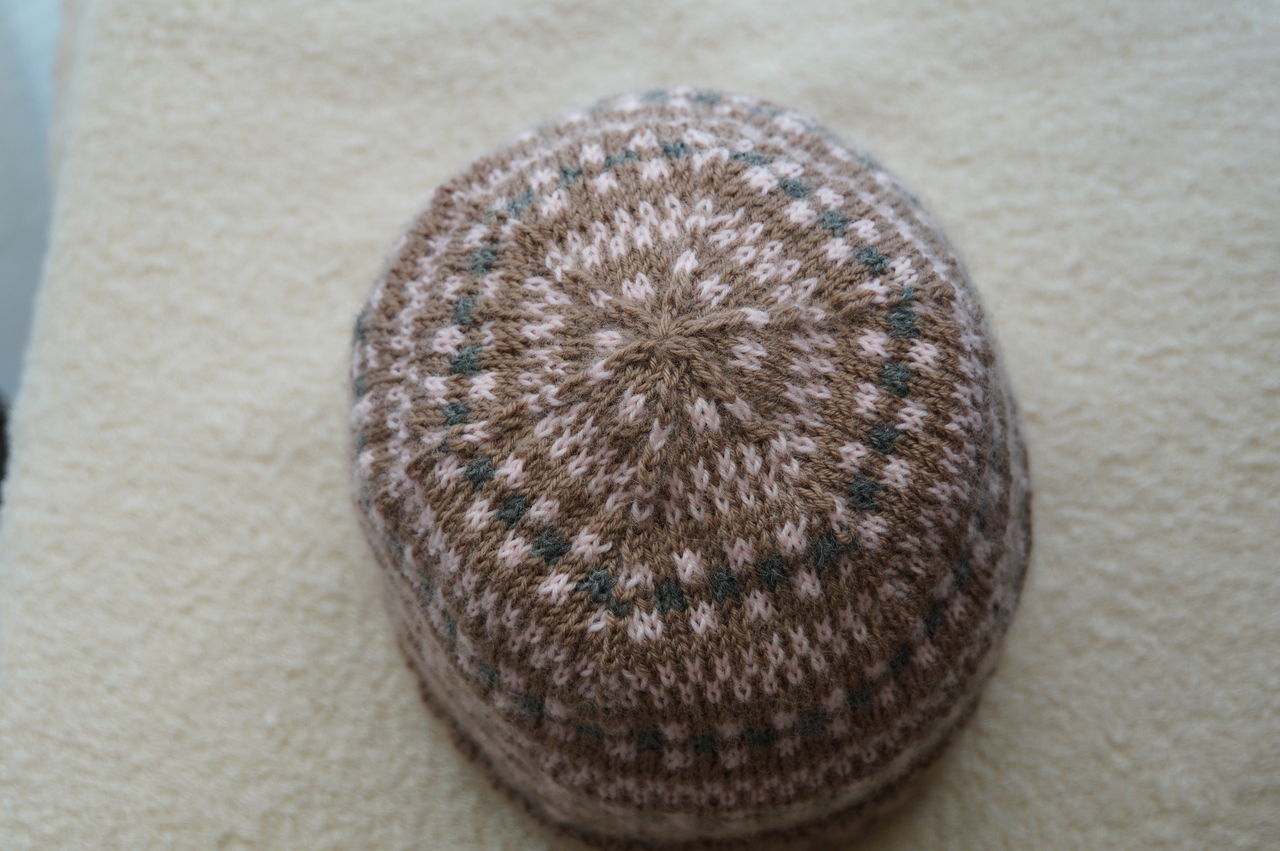 ▲帽子表てっぺん側です。綺麗な6角形です。亀甲模様をイメージしました。縁起がいい・・・かもしれない。