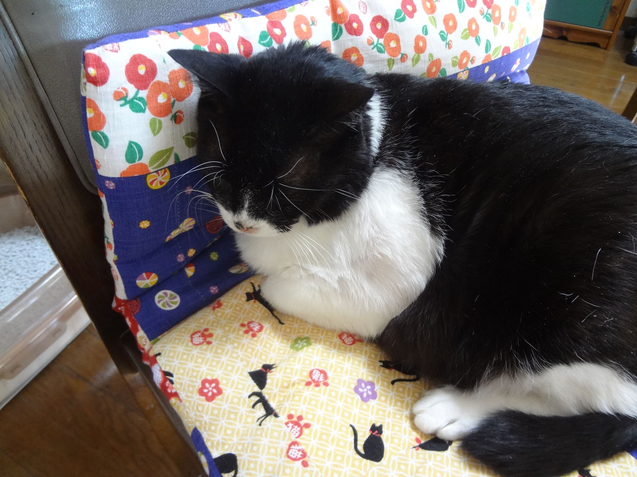 人の座った後はちょっと温かいので、座布団をすぐに横取りされます。