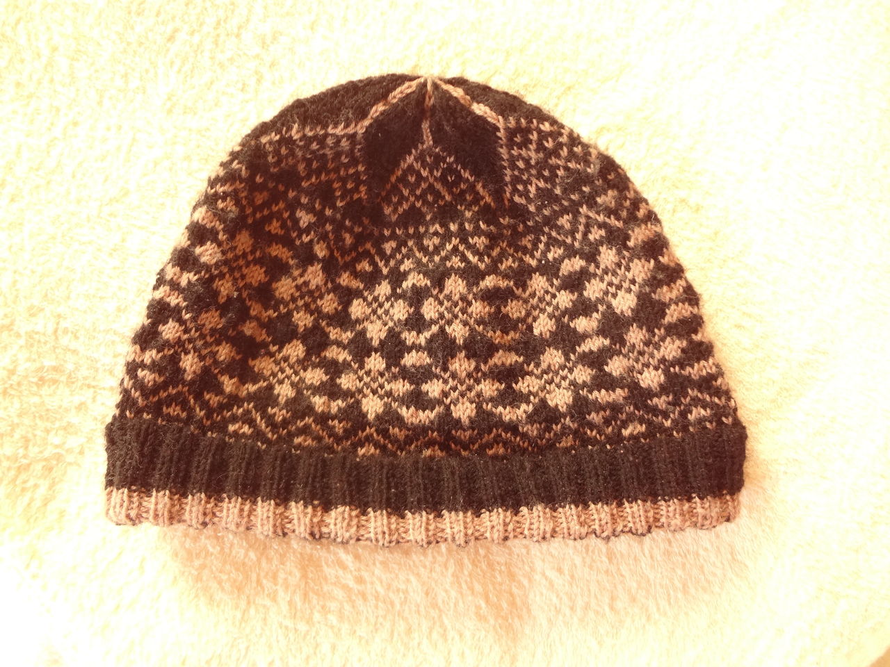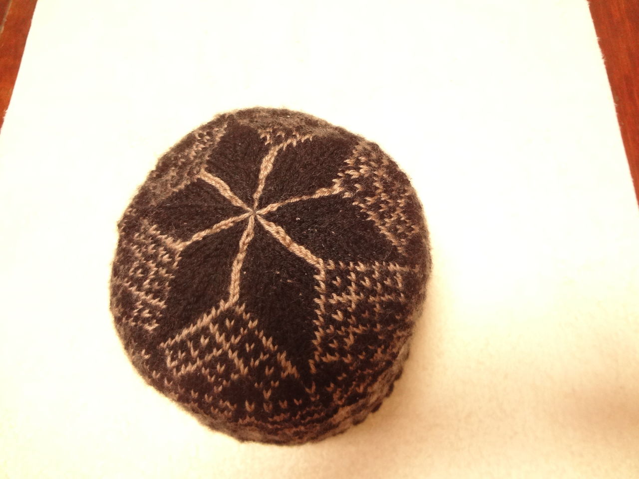 ▲帽子トップ。星模様が編みたくて頑張りました。本とはゲージが違うので、ほんの少し編み方を変えました。