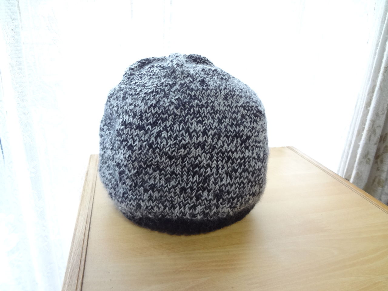 長男が理髪店から帰ると頭が寒いと言います。自分用に少し大きめの帽子を6段編み始めたところでした。そのまま緩めに編んで長男の帽子を作ることにしました。
