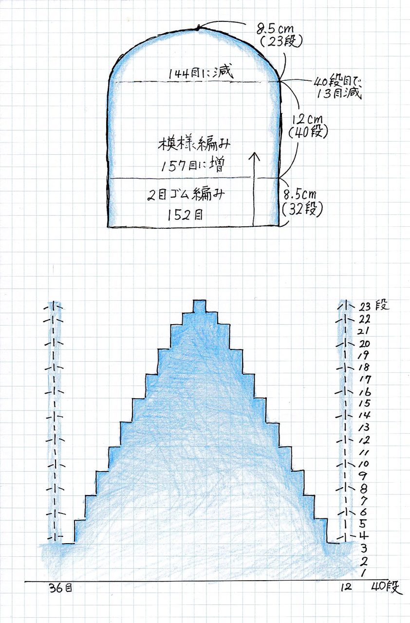 帽子サイド:12cm、38段