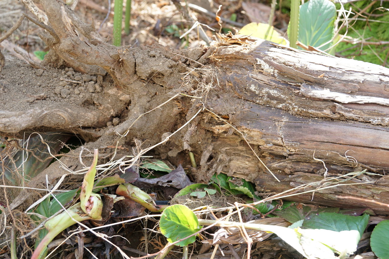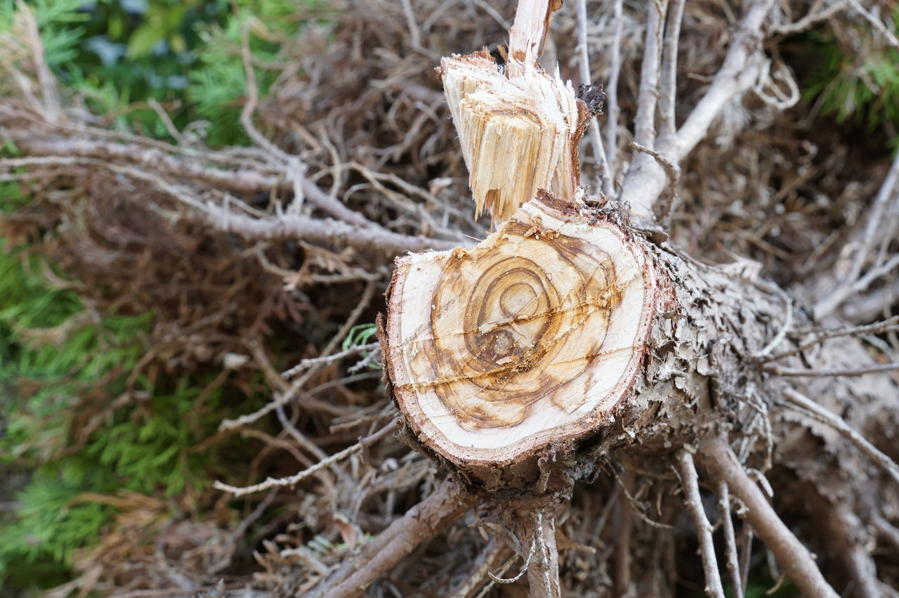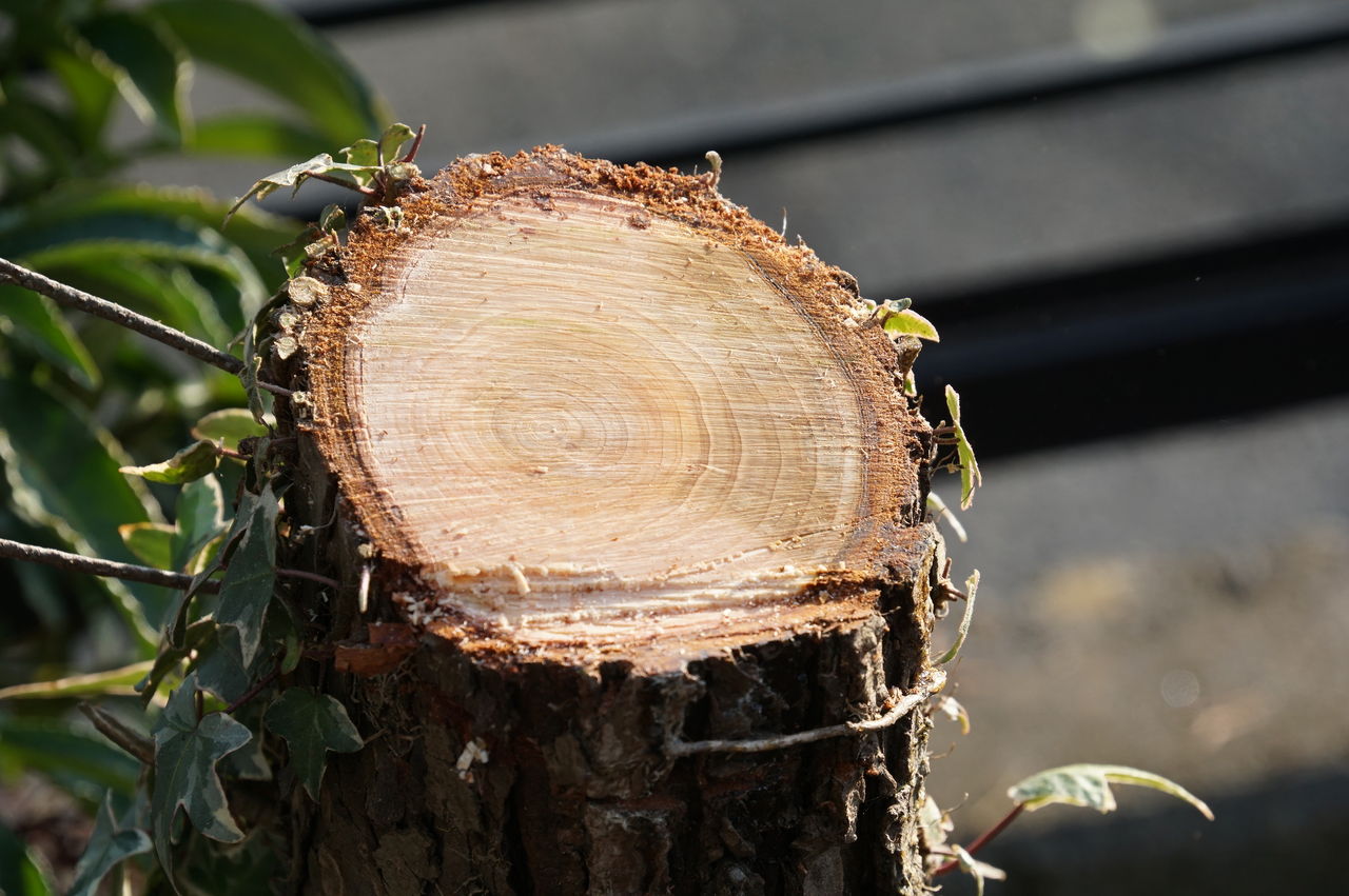 sony a6000虫に食害され、芯が腐り始めたコニファーの切り株。