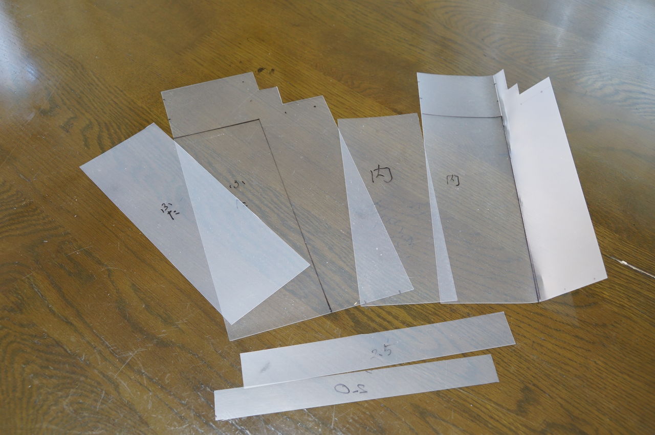 こちらは表布の型紙です。底板布は、底板分とその周りに1.5cmののりしろを付けて切ります。