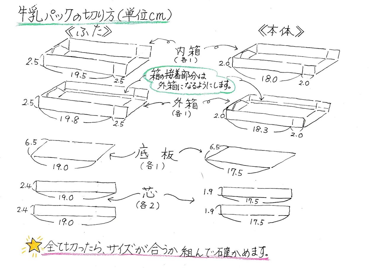 牛乳パック3個で作る筆箱