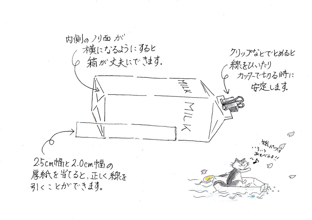 ①牛乳パックに線を引いて切る