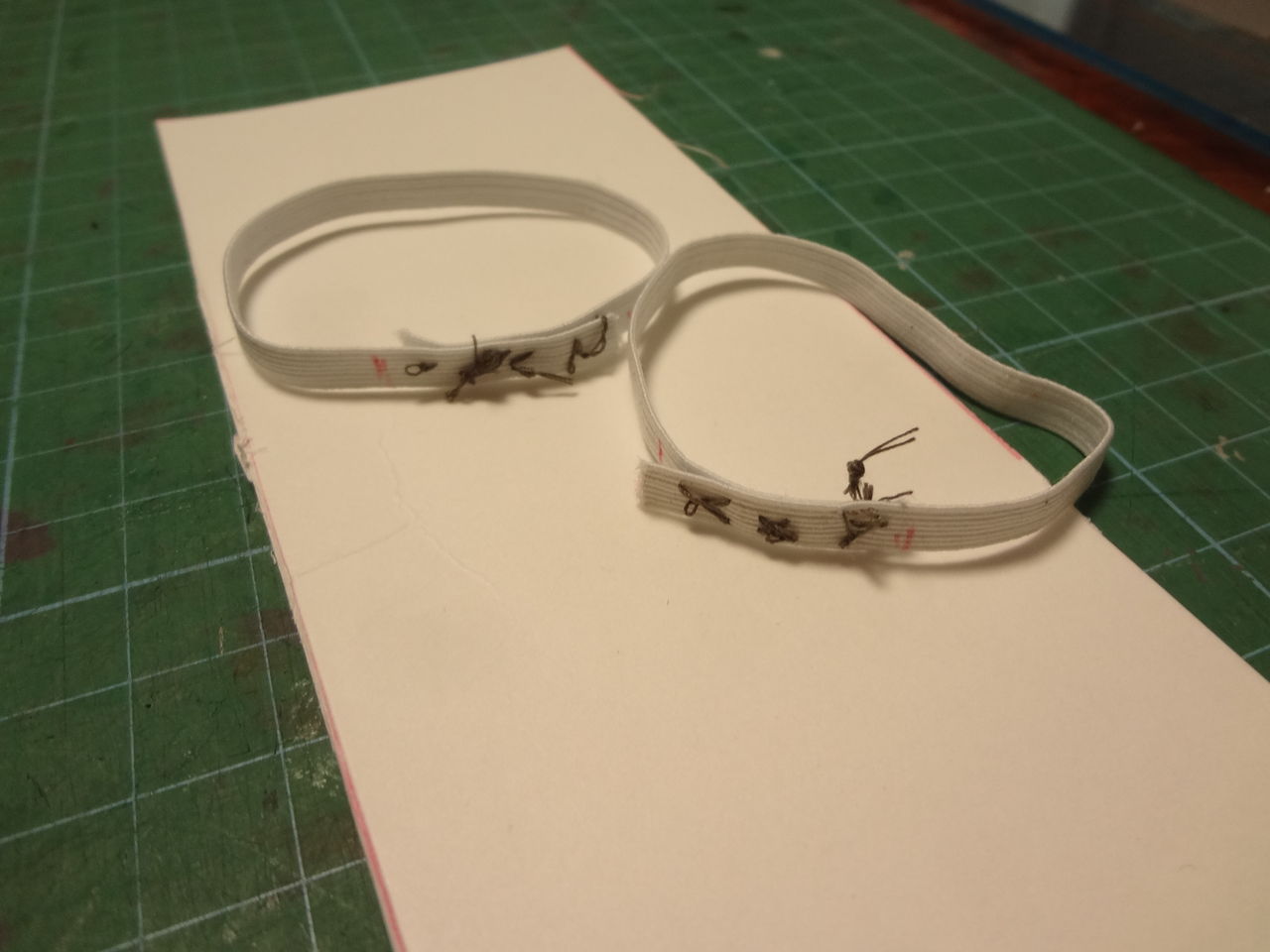 ゴムを付ける時はこの時点で付けます。ゴムは両端から5cmずつの所がベストです。