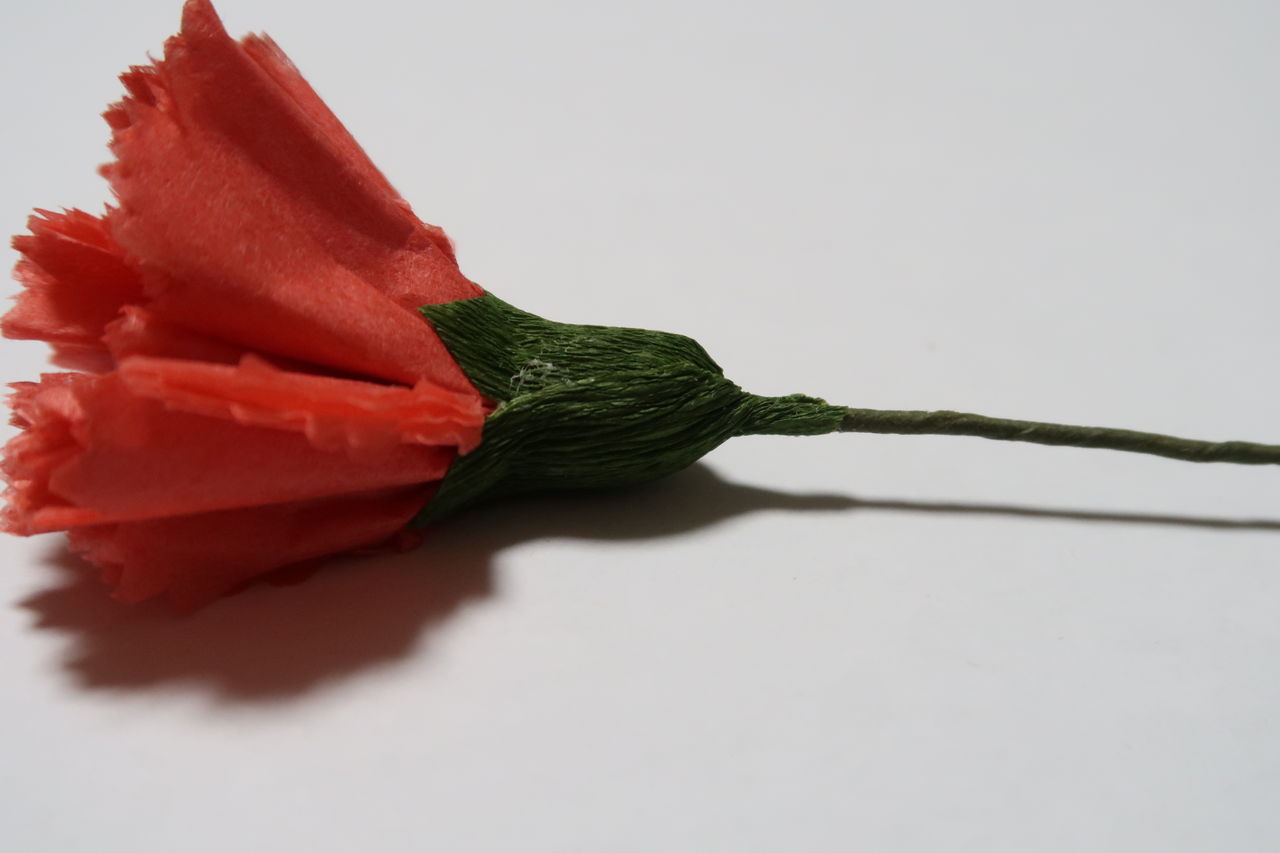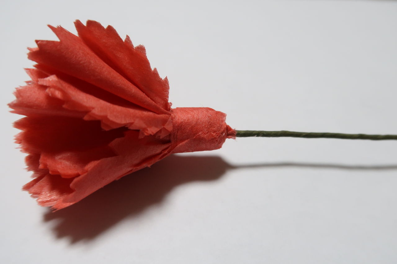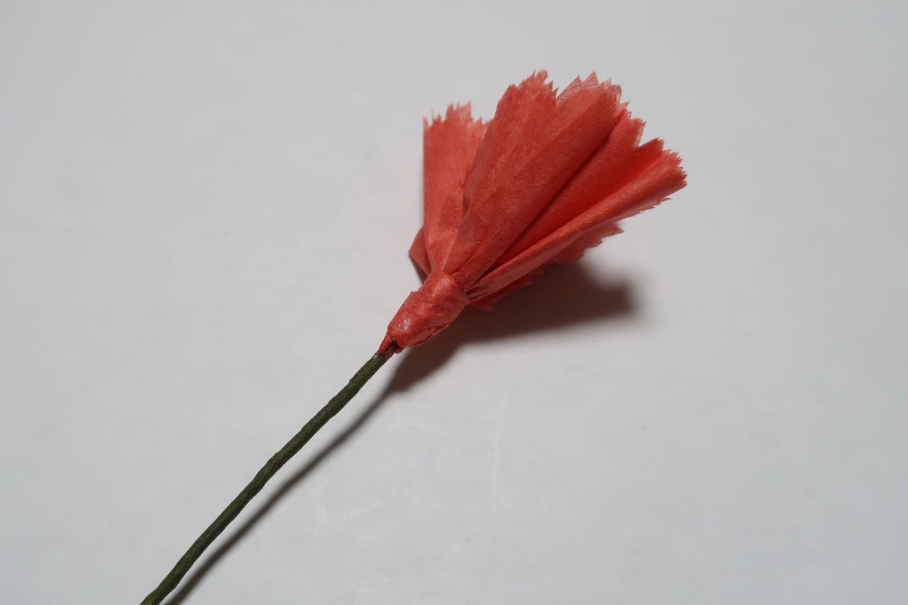 バラのペーパーフラワーを作った後に、更に何か作れないものかと、スイートピー、カーネーション、雛菊など色々挑戦してみました。その中でカーネーションはよくできたので、さらに改良を重ねて見栄えよく作りました。