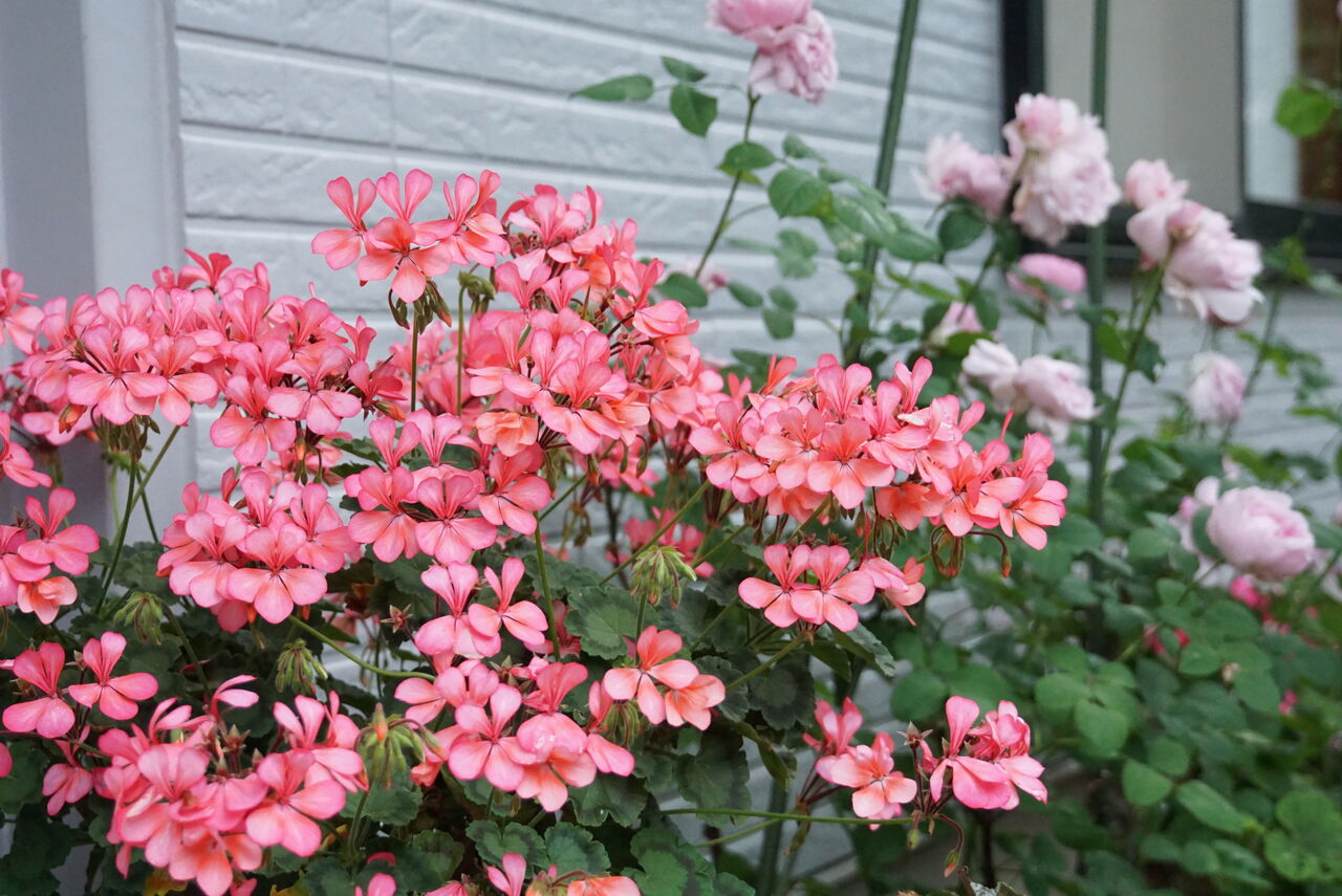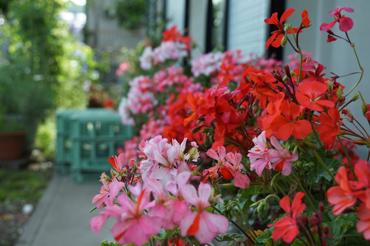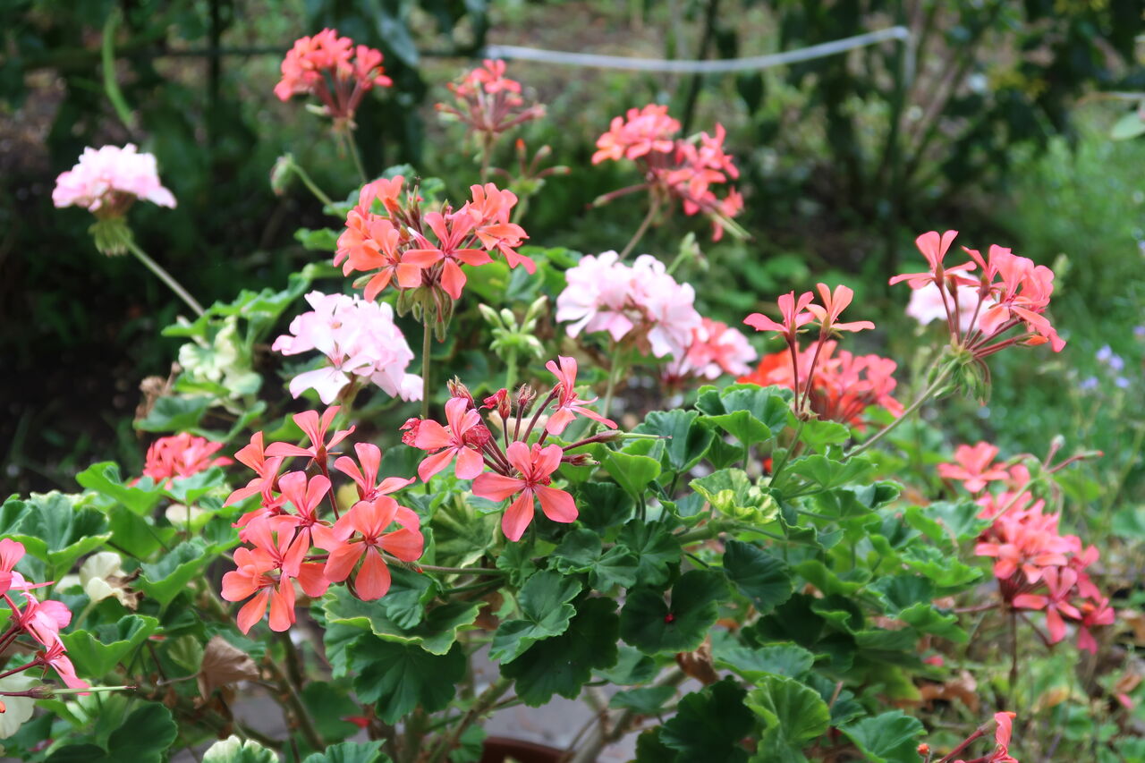 このように書くと、ゼラニウムはみんなそうでしょう!と言われてしまいますが、実は今まで、ここにある花と同じ花を咲かせながら挿木が全く出来なくて、毎年種を採取して播いていました。このゼラニウムのように強い品種ばかりだと、種まきや定期的な施肥もあまり厳密にしなくても、いつでも花いっぱいの理想的な庭ができます。