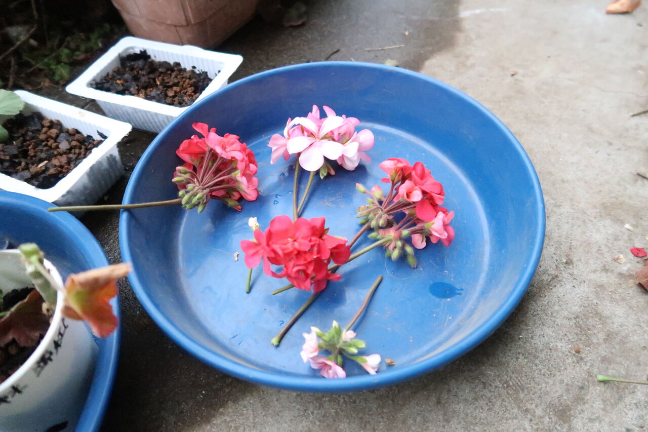 気温0度くらいまでなら絶え間なく花を咲かせる品種が庭でできました。このゼラニウムを増やして今年の夏は最強の花壇を作りをしたいと思いつつ、肩の痛みが取れないまま1月も下旬となりました。今夜遅くから雪の予報、急激な温度変化でゼラニウムを枯らしてしまう前に挿木をします。