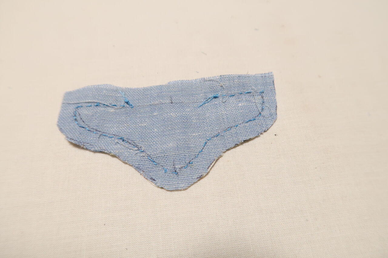 耳は2ミリほど控えたところを縫い針目が見えないようにします。