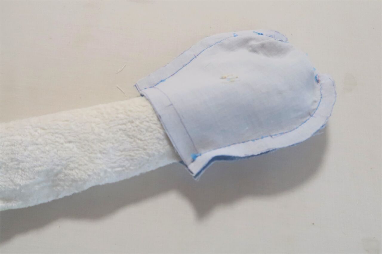 割りばしにハンドタオルを巻いて差し込んで丁寧にアイロンを掛けます。