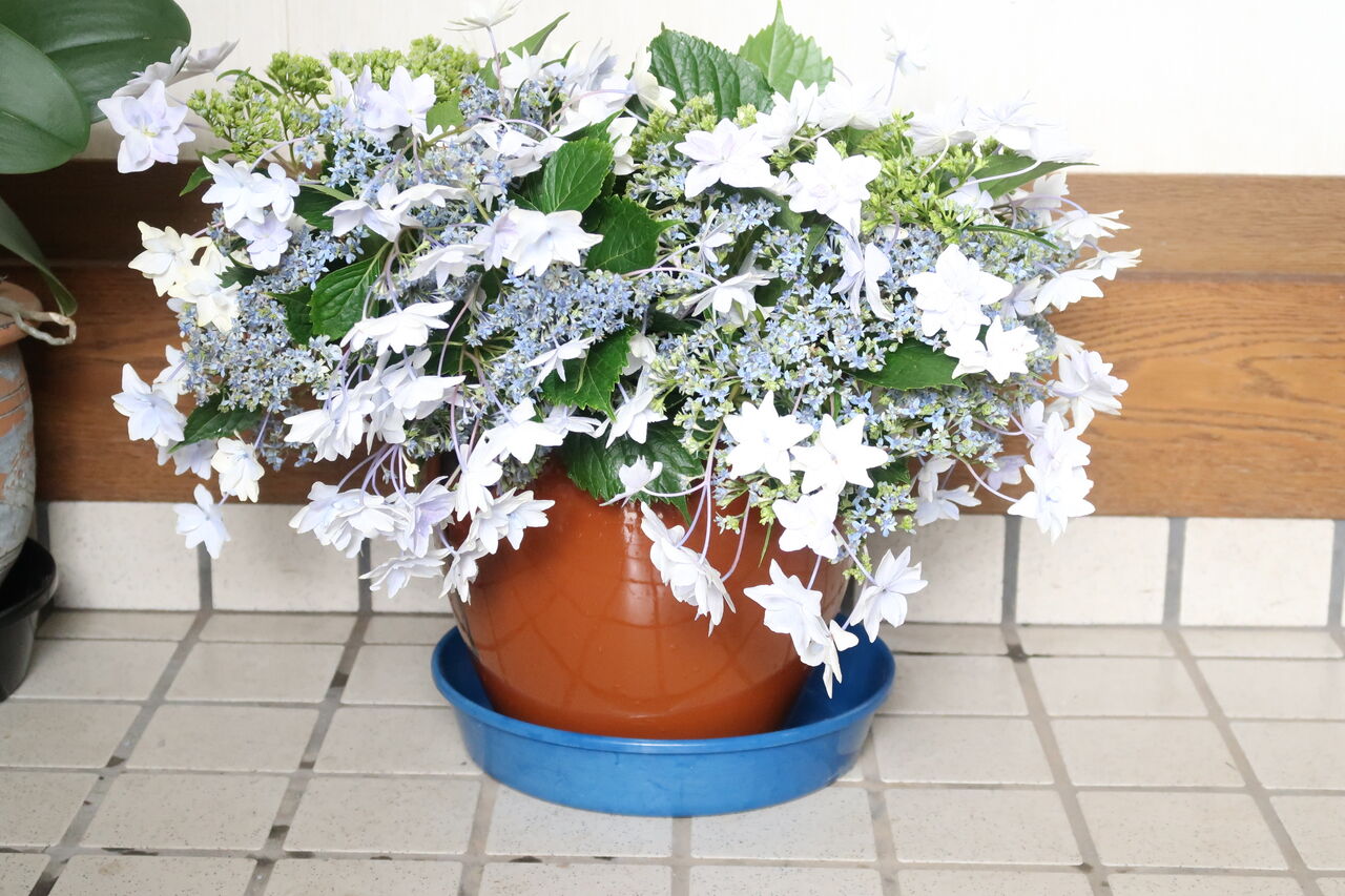 20本近く切りました。そのままゴミに出すのは名残惜しいので、大きな入れ物に飾りました。大体の紫陽花は水上げが悪いので、今日楽しめればいいかな、と言う感じです。
