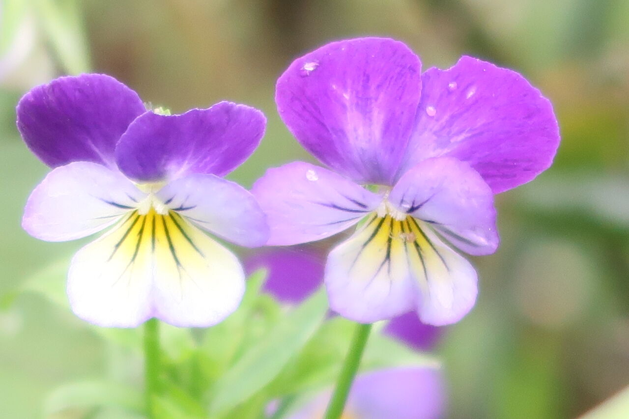 ユリの水滴を撮っていたらビオラの紫を見つけました。今頃咲き出したんですね。花びらかじられまくりですが、一番まともなものを撮りました。
