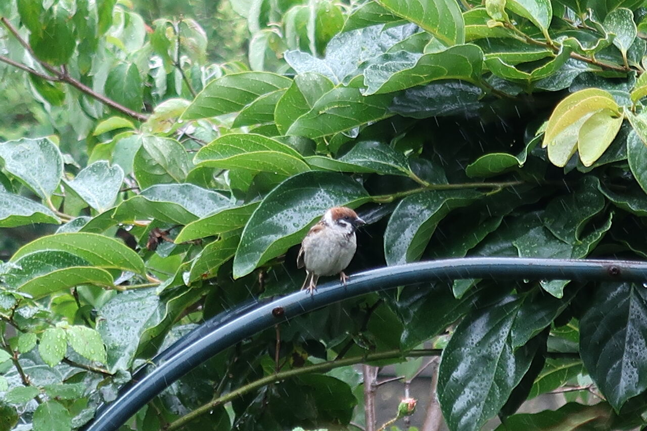 梅雨はうっとうしい。特に洗濯物が乾かず部屋干しをしなければならなくなるのが嫌です。乾燥機付き洗濯機を買うのが夢です。しかし、庭を眺めていると雨も面白くて、カメラで何でも撮りたくなります。雨降りの時しか見られない景色を、カメラを濡らしたくないので家の中から撮りました。