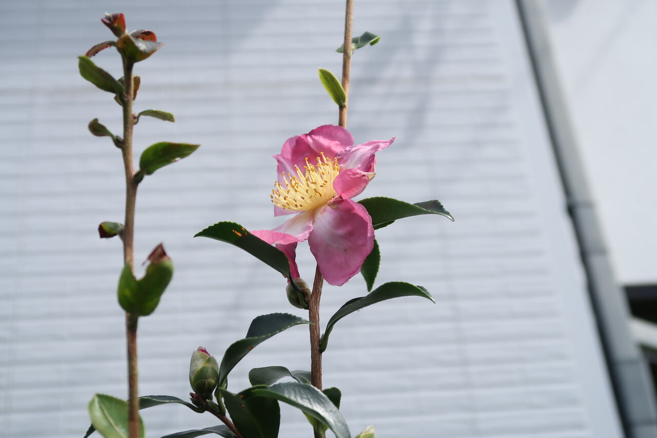 山茶花が咲いています。いつもは10月中ごろから咲きます。
