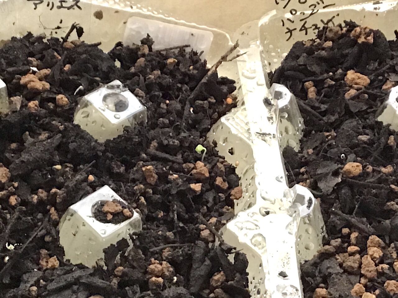 10月14日の様子。全体ではわかりませんが、近づくと芽が出ています。