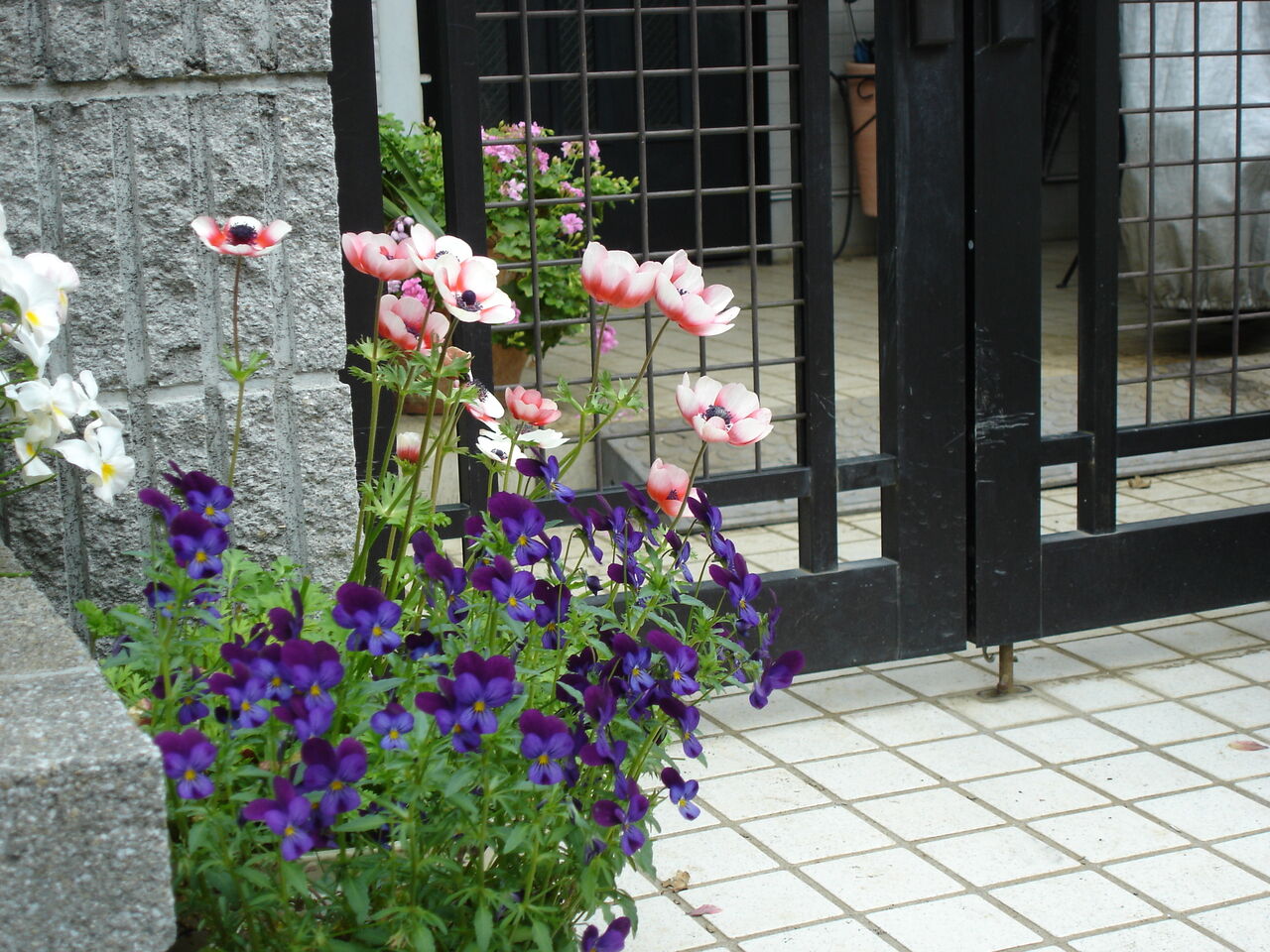 5月18日、門の前に。鉢植えは好きなところに飾ることができます。