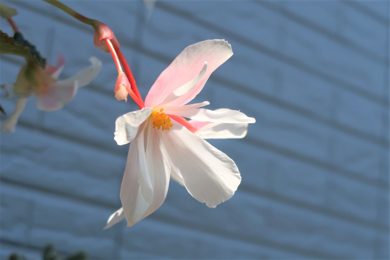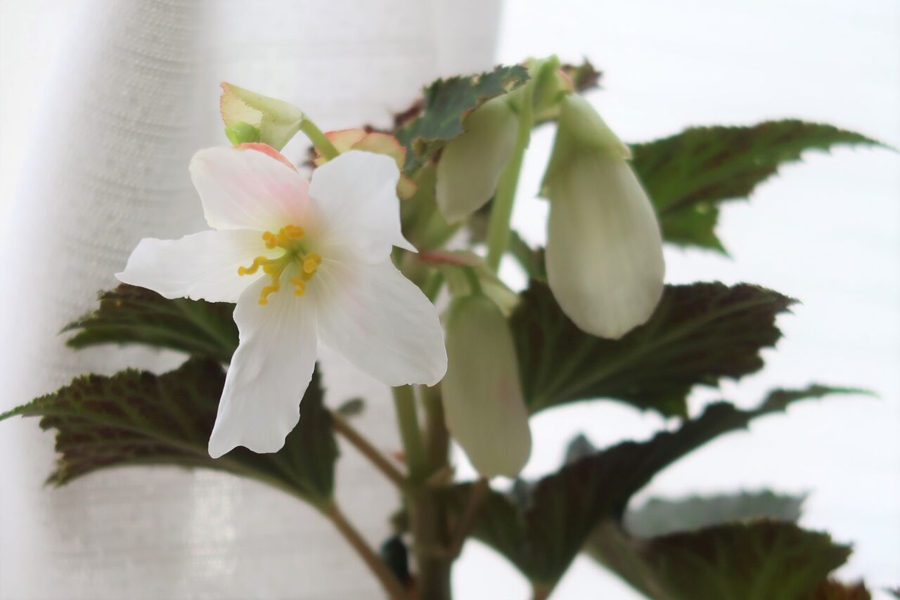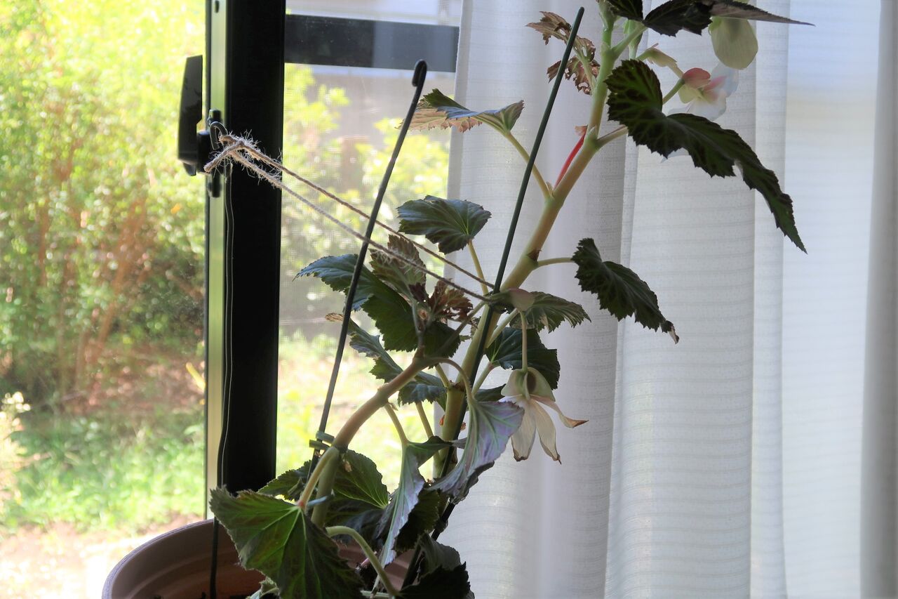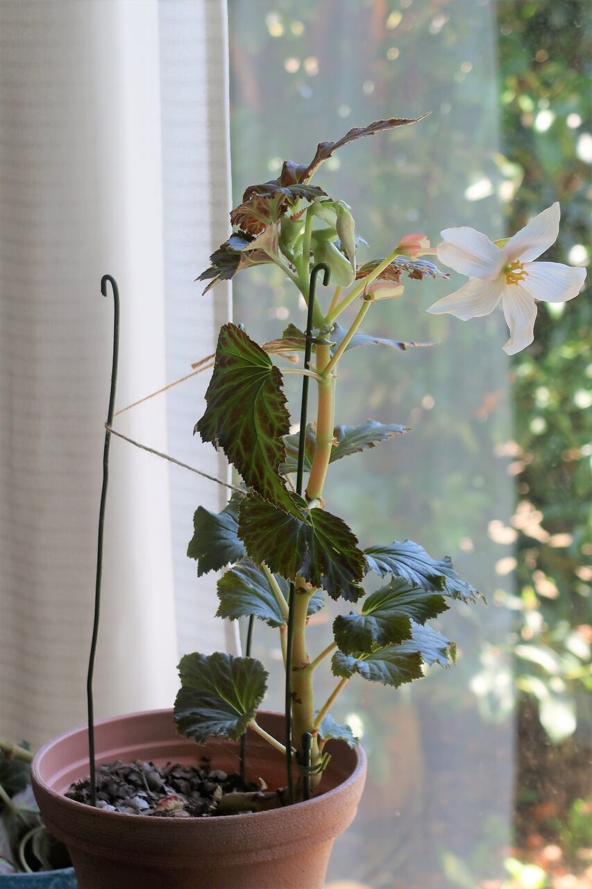 家の中に取り込んだのを機に家の中で楽しもうと思いましたが、家の中では、カーテンの開け閉めに伴い派手にベゴニアを揺らし、さらに蕾を落としてしまうので家の裏で管理することにしました。風速6メートルより蕾を落とす家の中。