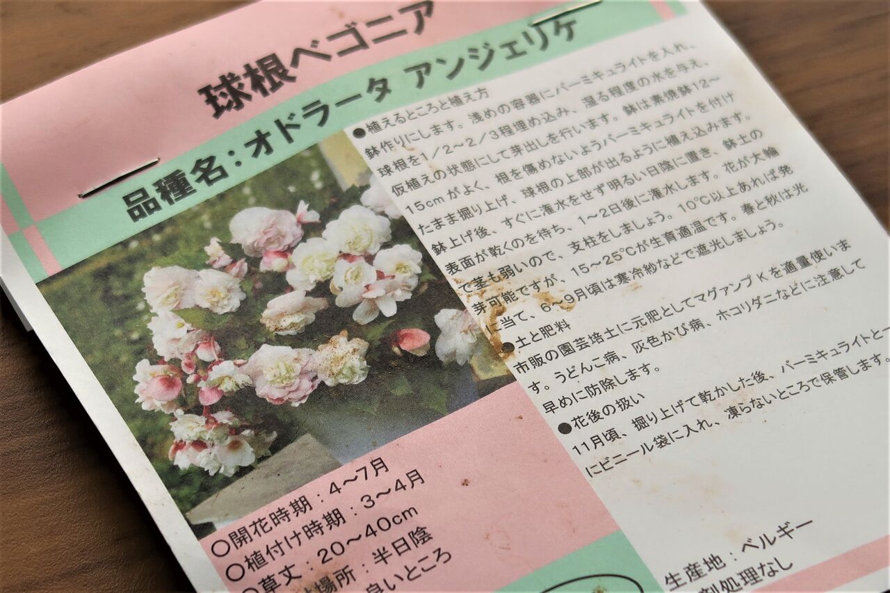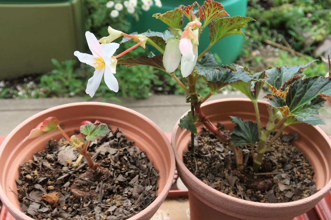 植え付けから最初の花が咲くまでの記録を「球根ベゴニア【オドラータ・アンジェリケ】生育日記&開花」で書きました。