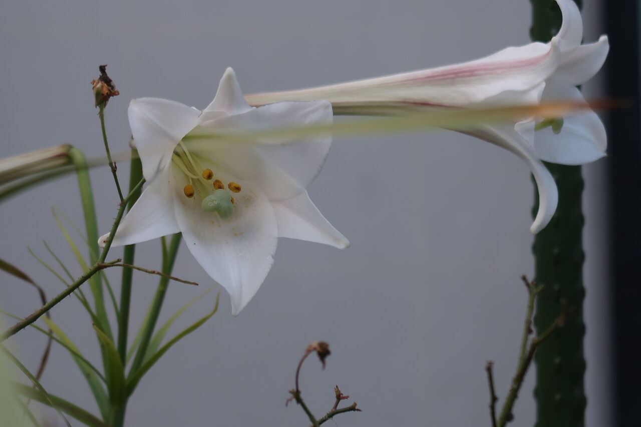 夏に傷んだ茎を切り取ったところから出た芽に花が咲きました。