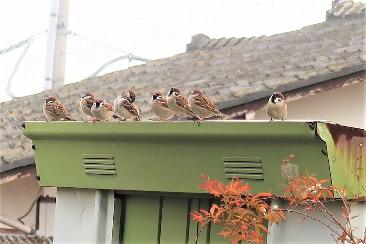 手入れされていない庭には草の実がいっぱい。スズメたちがその草の実を拾いに来ます。「スズメの落穂拾い」です。20羽近いスズメがガサゴソ実に賑やかです。