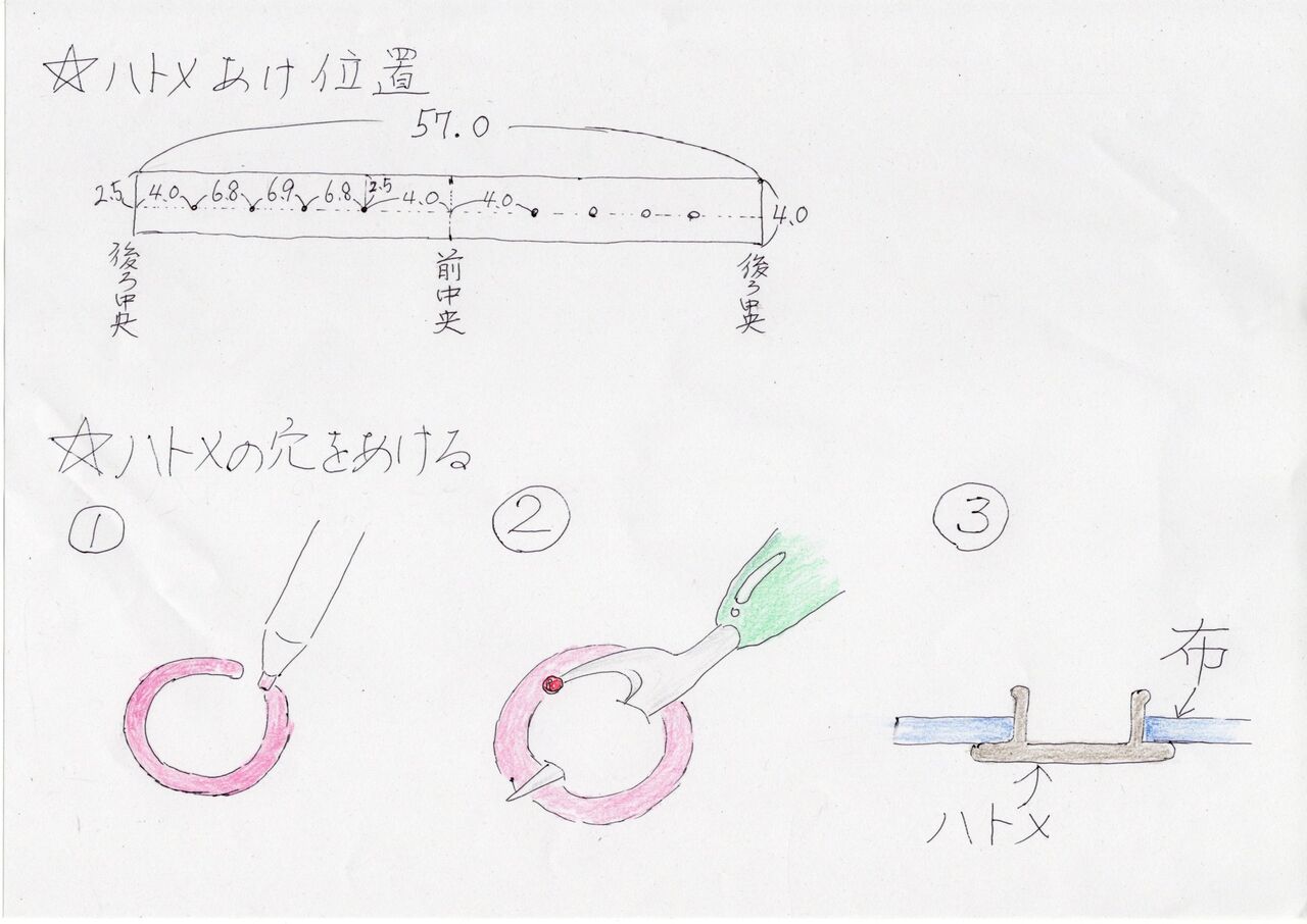 ハトメをあける位置