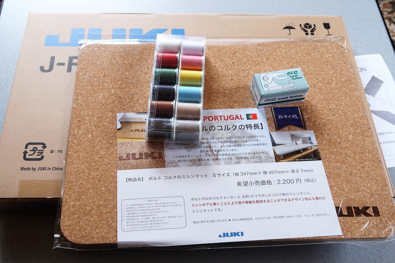 振動を抑えるコルクマット、100メートルミシン糸12色、サイドカッター