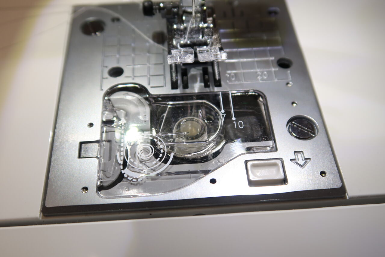 抑えと下糸周りです。針に糸通しがついていて、糸通しの面倒がありません。下糸のセットはちょっとだけ「これでいいの?」という感じの軽さがあります。慣れると問題ないです。