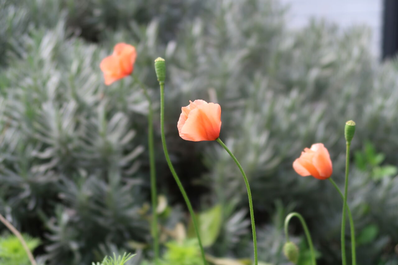 ケシ、雑草のごとく。抜いても抜いても春どこかで咲いています。オレンジの花は元気になりますが、なんと一日花。花の寿命短すぎで、すぐ草だけになります。