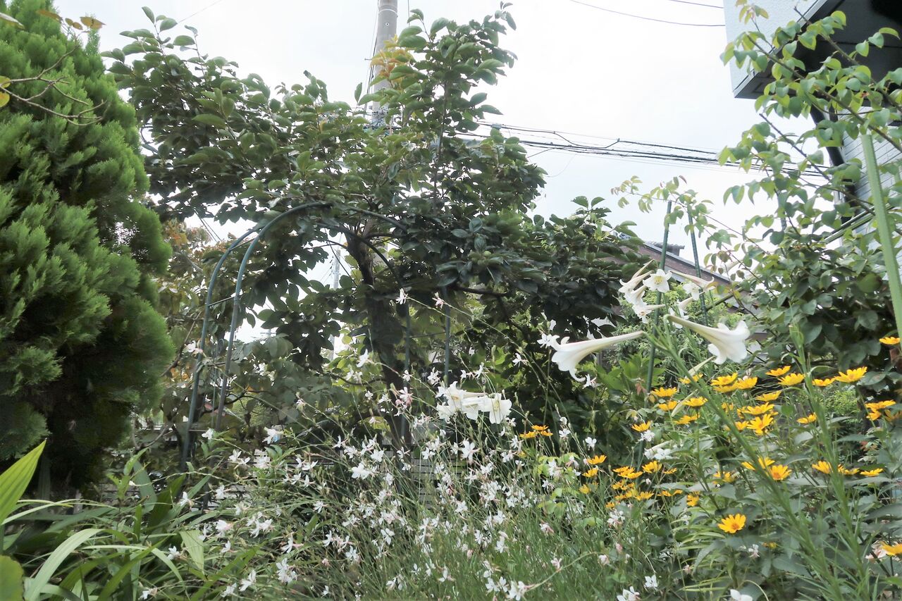 木の幹を足でトンと蹴るとカナブンの雨です。小さく軽いカナブンはよその家へ飛んでいきました。駐車場のコンクリートの上に落ちたのはじっとしています。