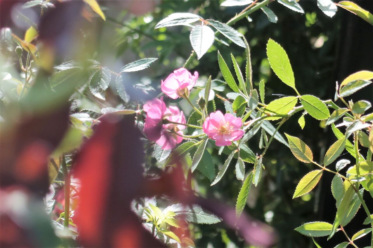 イエスタディが咲いています。澄んだきれいなピンクの一重咲きです。シャクトリムシがたくさんついていましたが、色が似ていてわかりにくいので枝を軽くたたいたら2匹落ちてきました。カナブンみたい・・・