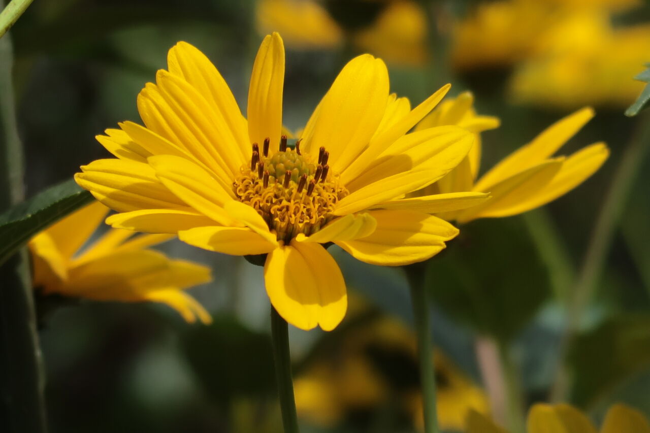 台風とは関係ないですがヒメヒマワリに半八重の花がいくつかありました。