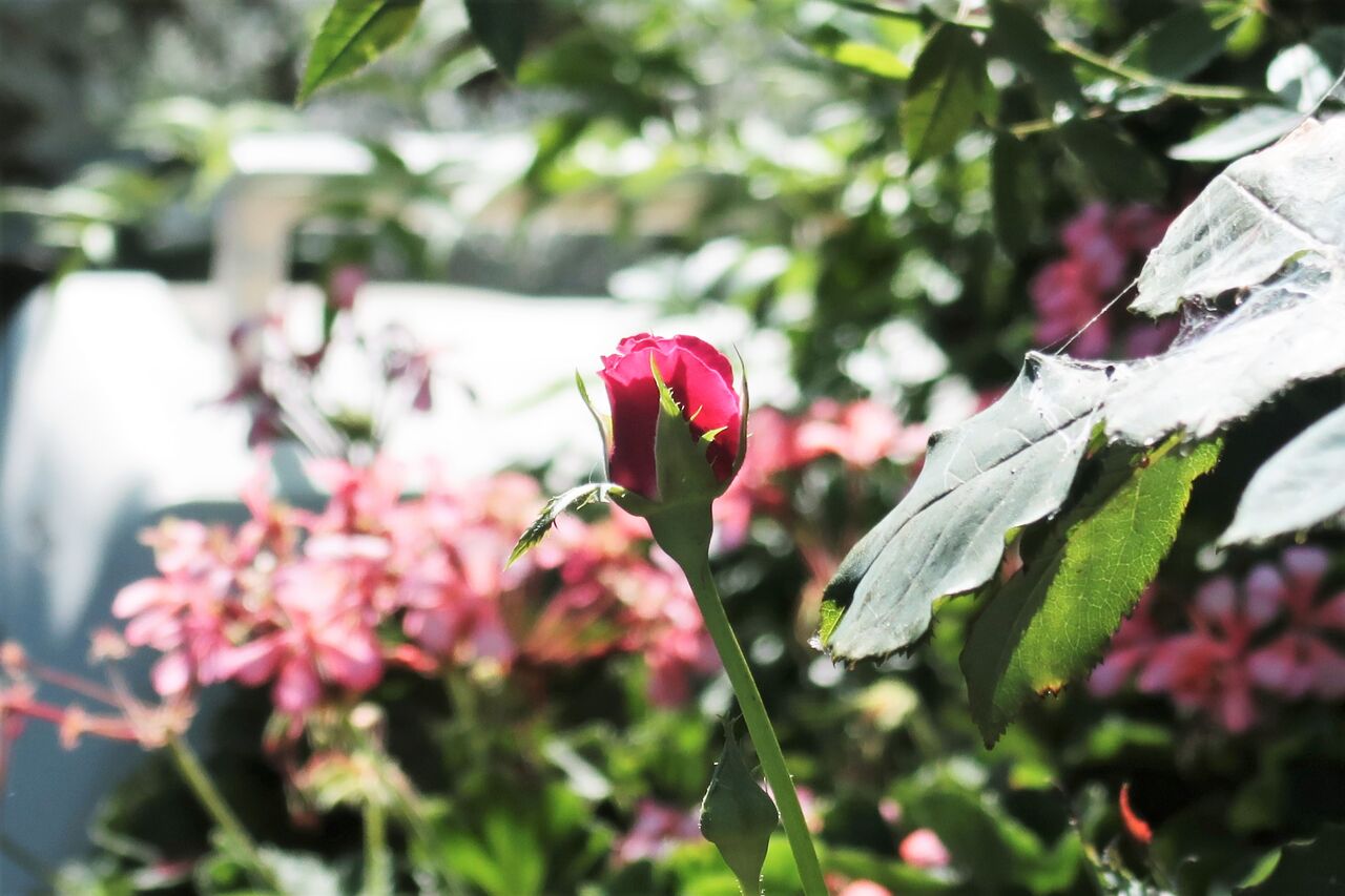 さし木した苗を、暑い時期を乗り越えるために鉢を大きくしました。それから2度目の蕾です。蕾の上がってくるサイクルが早いタイプです。