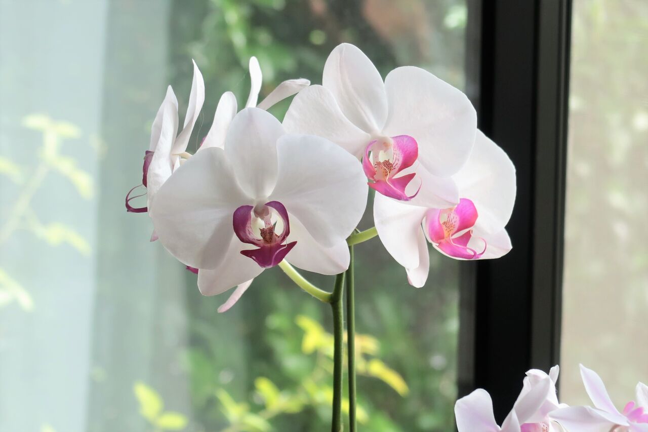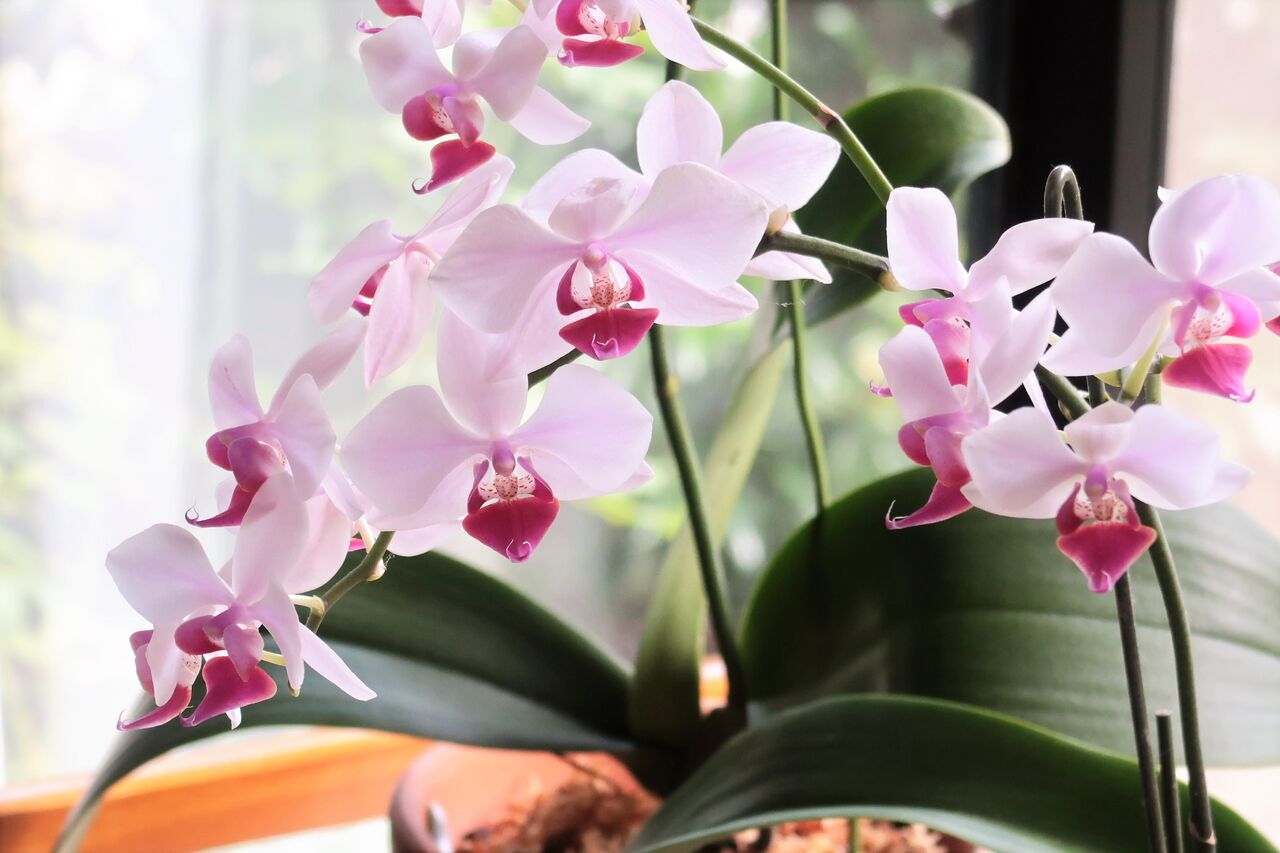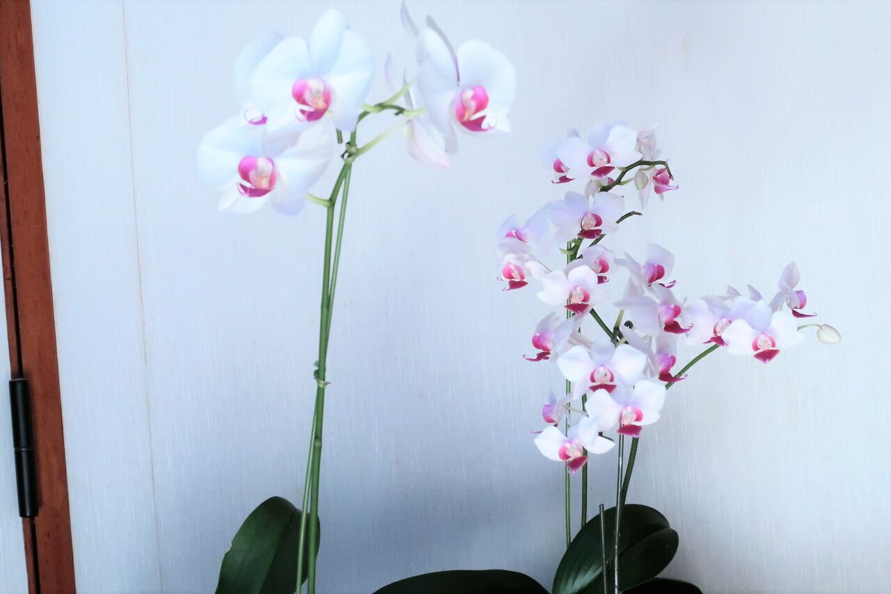 4月29日に植え替えをした胡蝶蘭が咲きました。しばらく手入れができなかったので葉っぱも少ないので、花を咲かせるつもりはなかったのですが、蕾が出ていたのを機に、いつも春に咲かせるところを、夏の今咲かせることにしました。肥料一回しかやっていないので、ちょっと気になりますが・・・